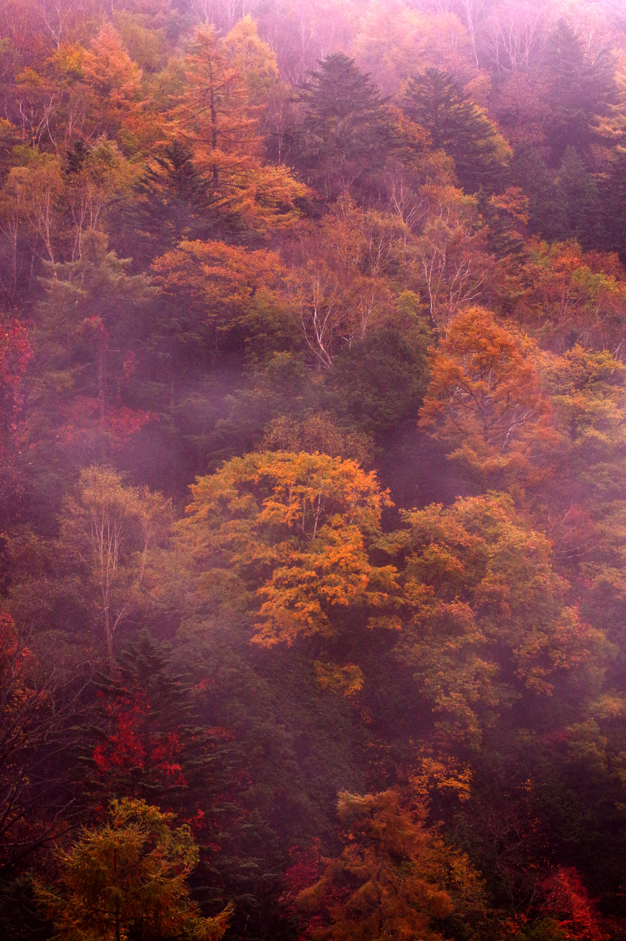 昨日はずっと雨が降っていましたが、小やみになって霧が晴れかけたときの温泉からの1枚。