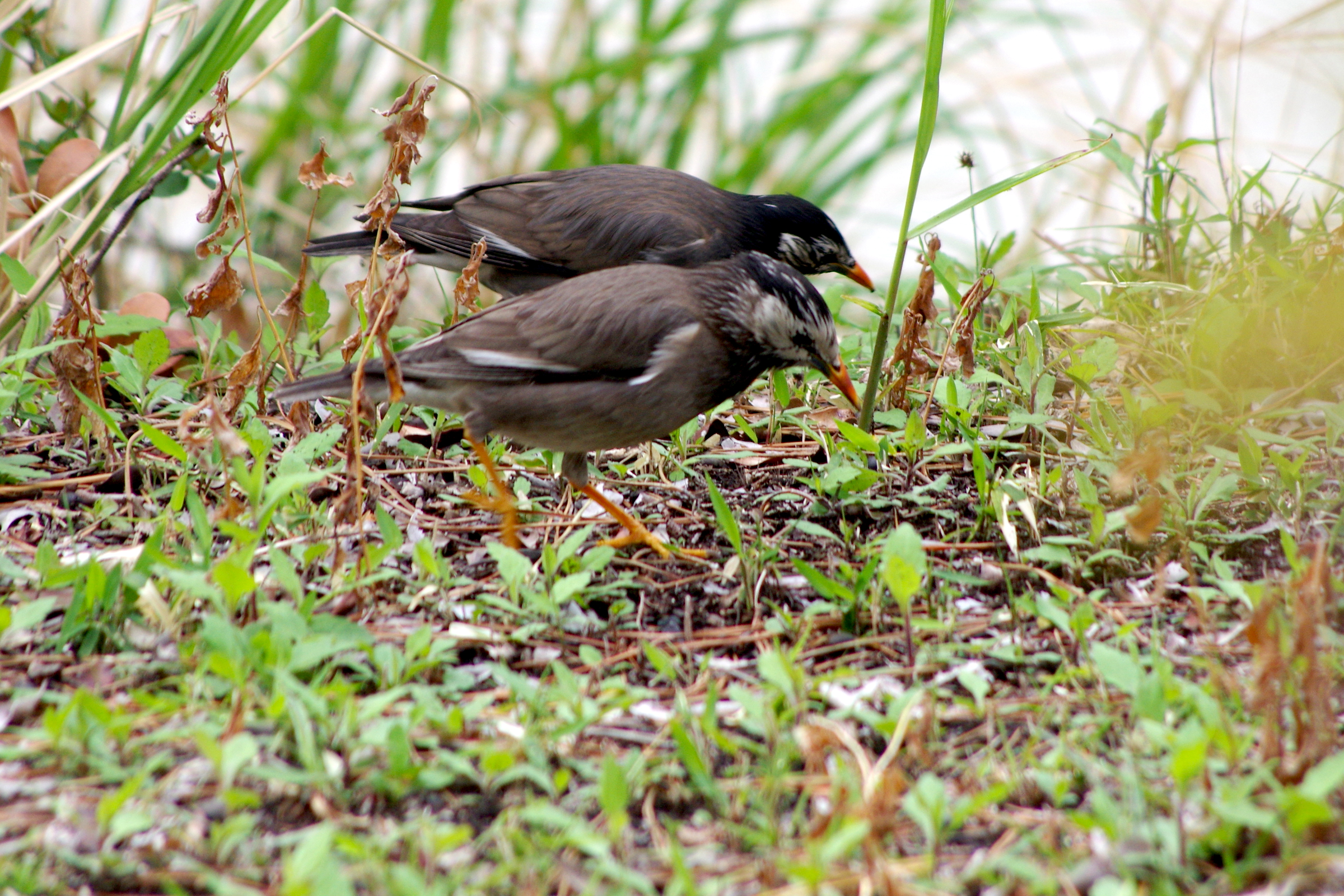庭を見ていたら、ムクドリくんが朝ご飯に来ました。